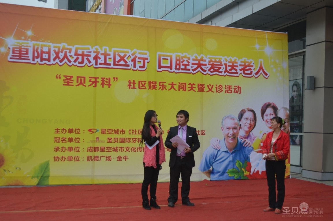“牙科做义诊,公益为民好欢喜!”一溜由金牛区康禧社区自编自导自演的快板书真实道出了一群快乐老年人的心声。10月22日,由四川电视台星空城市主办,圣贝牙科医院冠名的“重阳欢乐社区行,口腔关爱送老人”义诊活动在交大沃尔玛广场盛大启幕,数百人参与口腔保健问题挂号和检查。