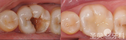 1.浅龋:龋坏仅局限于牙齿表面,此时患者常无自觉症状,一般在牙医检查时可看到牙齿窝沟或牙面有白色粉笔样斑,或是色素沉着形成墨浸状斑,治疗浅龋充填的效果最好。