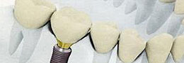 ——是将纯钛金属经过精密的电脑设计,制造成牙根型的圆柱体,经由手术植入牙槽骨内,经过1-3个月后,当人工牙根与牙槽骨密合后,再于人工牙根上制作牙冠。由于人工牙根深植于牙骨 内,不需要借自然牙齿的力量就可有承受正常的咀嚼力量,功能和美观上几乎和自然牙一样,因此已经成为缺牙的主要治疗方式。